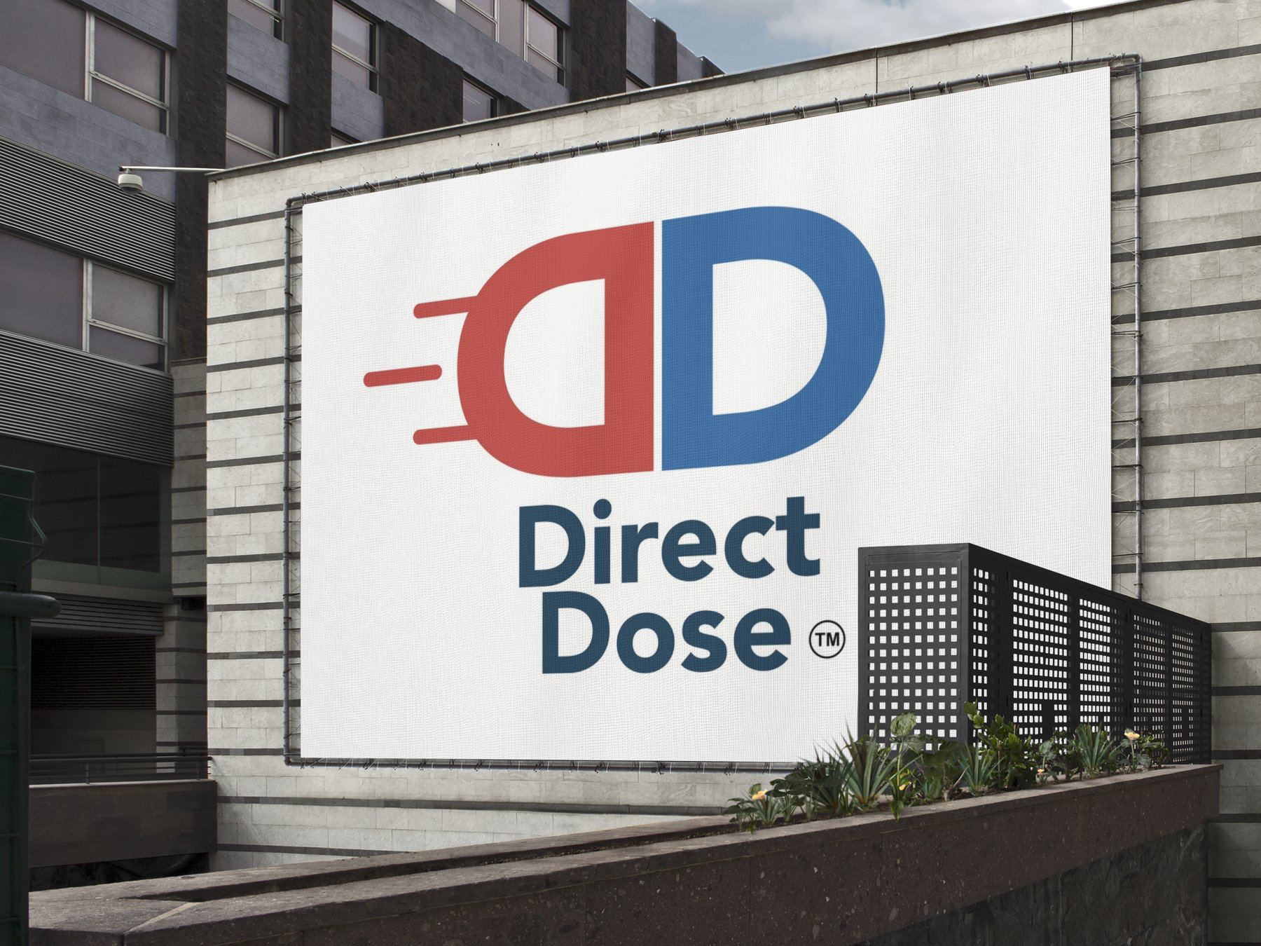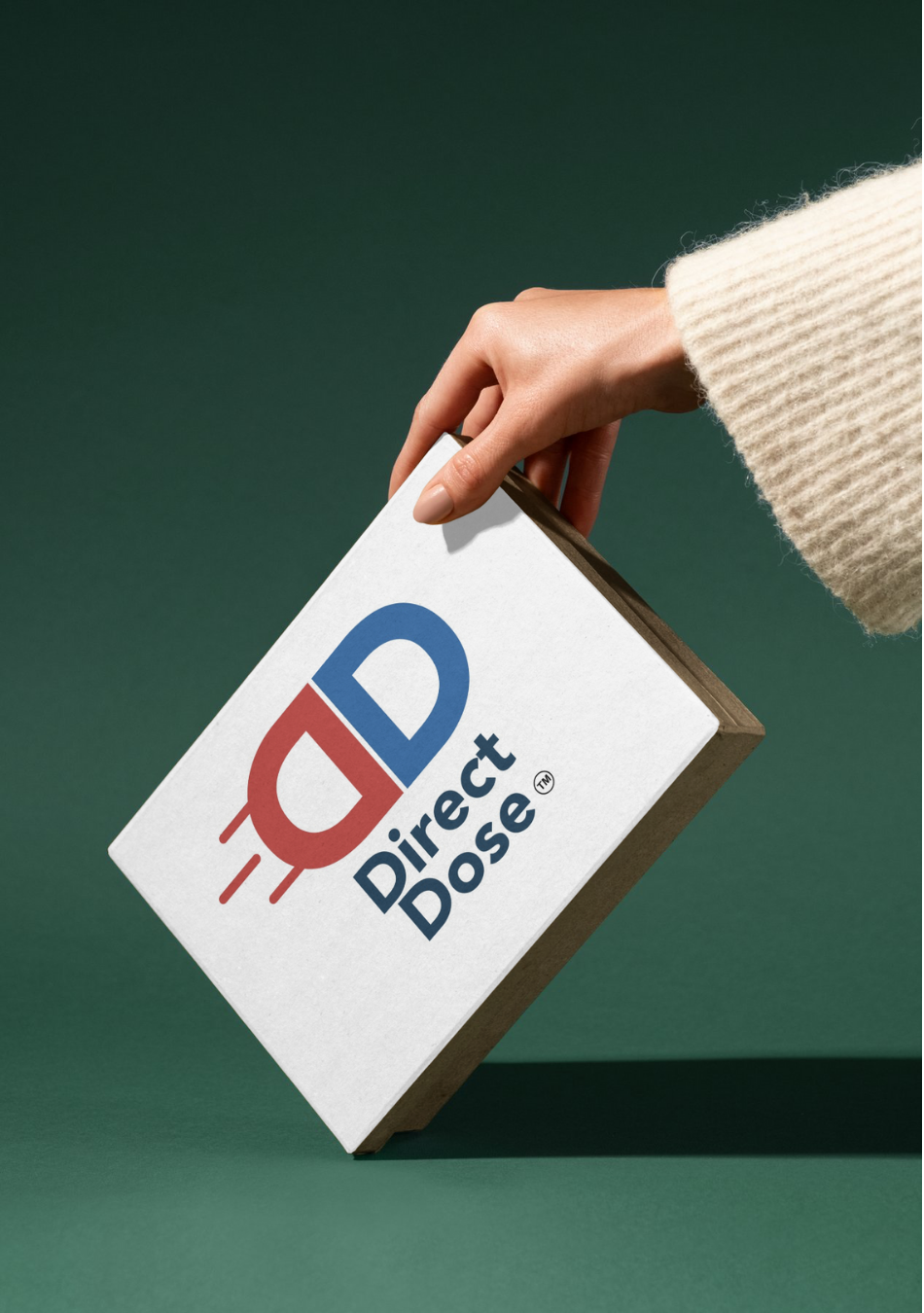 The Direct Dose logo was designed to visually communicate speed, trust, and accessibility within healthcare delivery. The double “D” form is constructed using simple, rounded shapes to reference a pill capsule, reinforcing the core function of medication distribution while maintaining a clean, modern aesthetic. The colour palette combines blue and red to balance trust and care with urgency and action with blue commonly associated with healthcare, reliability, and safety, and red signalling immediacy and directness. The horizontal lines extending from the red “D” suggest motion and delivery, visually anticipating the word Direct and reinforcing the idea of fast, efficient service. The name Direct Dose reflects the brand’s purpose: a straightforward, secure connection between medication and the individual, removing barriers and delays while prioritising user safety and ease of access.