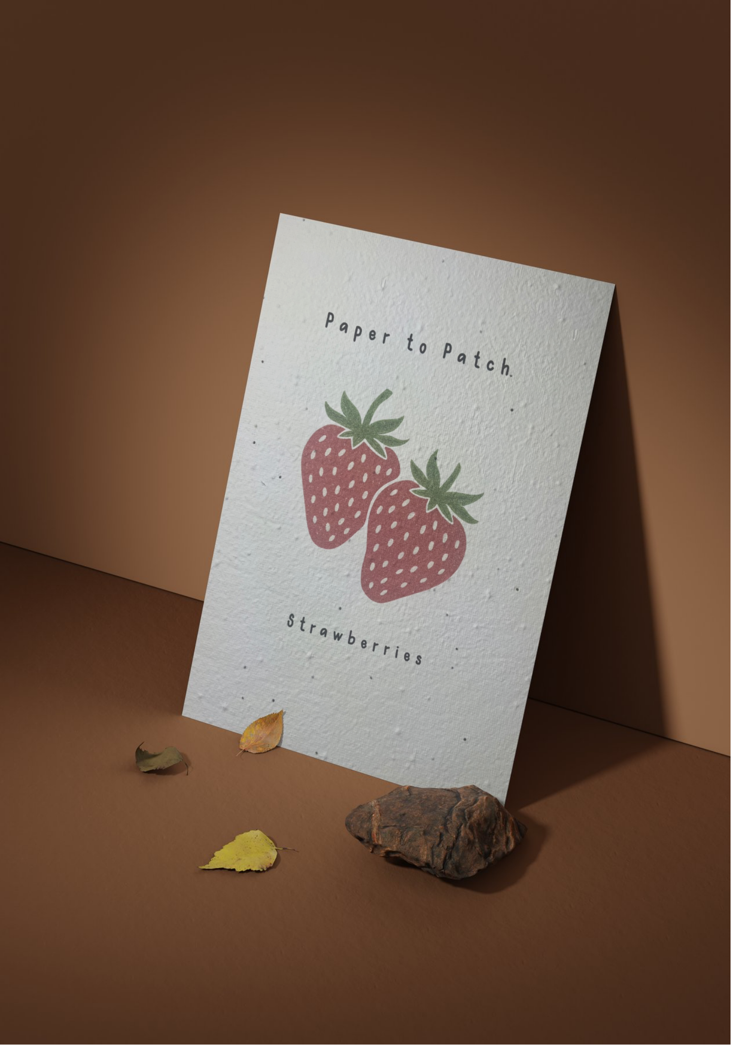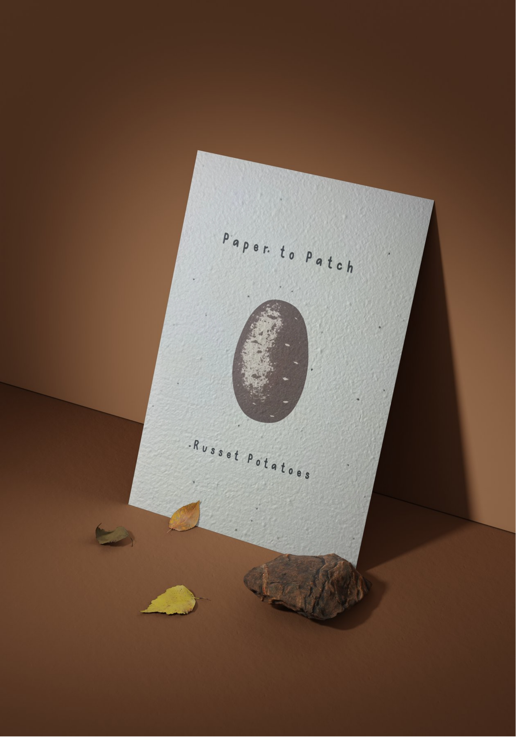 Paper to Patch is a series of three plantable paper pieces designed to visually and materially reflect the life they hold within. Each design: Russet Potatoes, Lemon Scented Bottlebrush, and Strawberries features a hand-illustrated, minimal graphic centred on textured, seed-embedded stock. The muted, earthy colour palette draws directly from the natural tones of each plant, creating an honest and grounded aesthetic. Simple typography with generous spacing reinforces the organic, considered nature of the project, allowing the illustrations to remain the focal point. The subtle grain of the paper and restrained composition echo the concept of growth and sustainability, ensuring the visual language aligns with the tactile, regenerative purpose of the pieces.